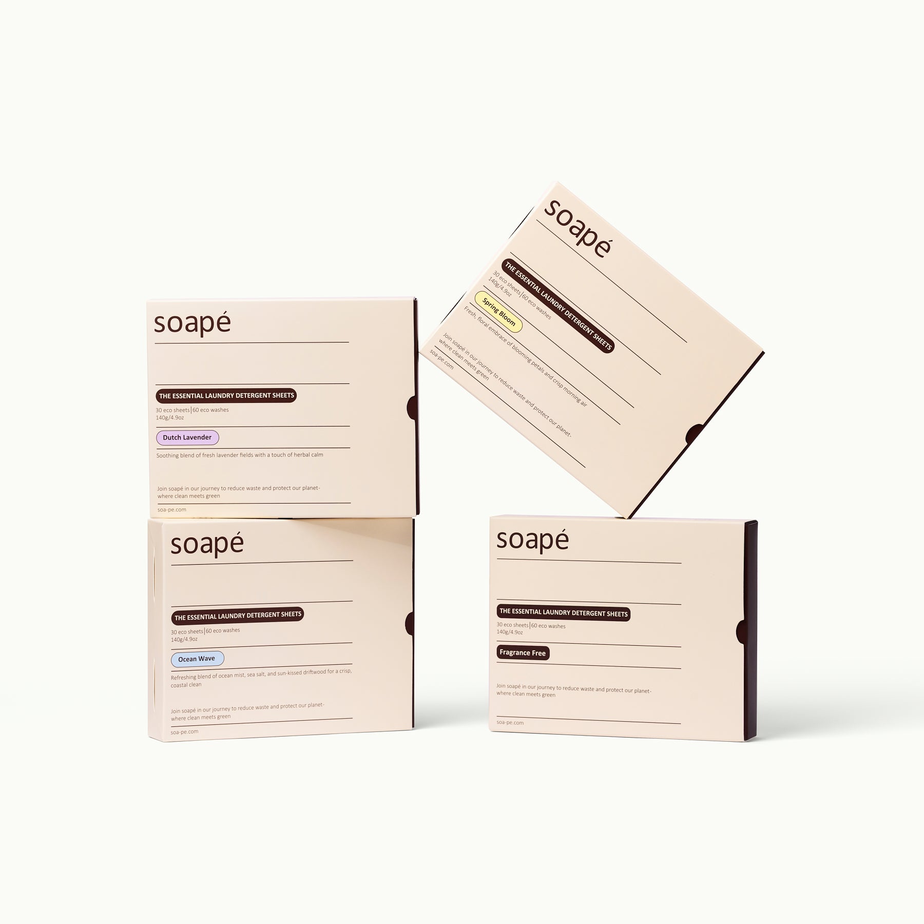 soapé began with a simple idea: what if everyday chores could contribute to a cleaner world? Our founder envisioned a future where sustainable living wasn’t just an option, but the standard. From this vision, soapé was born – starting with our innovative laundry detergent sheets, designed to simplify your laundry routine while protecting the planet.